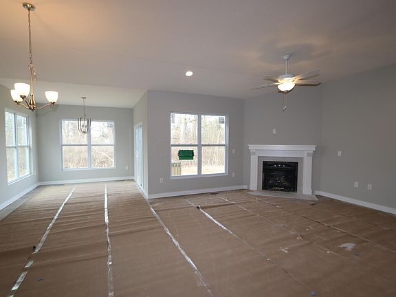Welcome home to this ranch floorplan, featuring 3 bedrooms, 2 bathrooms, and a 2-car garage. 2 secondary bedrooms and a full bathroom greet you upon entry from the covered front porch. The foyer opens up to the open-concept floorplan where the kitchen, family room, and laundry area effortlessly flow together. The family room offers a fireplace and a vaulted ceiling for added elegance. You will enjoy basking in the natural light shining through the windows in the morning room. The owner's bedroom sits off a small vestibule next to the family room and is equipped with a vaulted ceiling, a walk-in closet, and an en-suite bathroom. This home also includes a full, unfinished basement for future living space or storage!