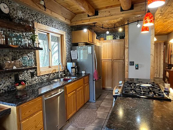 Beautiful 2-3 bedroom, 2 bath custom home on 2.19 wooded acres. Enjoy nature with lake access nearby, fire pit patio, deck with pergola, and trails close by. Features quartz kitchen counter tops, hickory cabinets, loft with custom log staircase, semi-finished basement, heated workshop, fenced in garden, blueberry patches, raspberries, grapes, fruit bearing trees and outbuildings. Peaceful, private, and perfect for outdoor lovers.