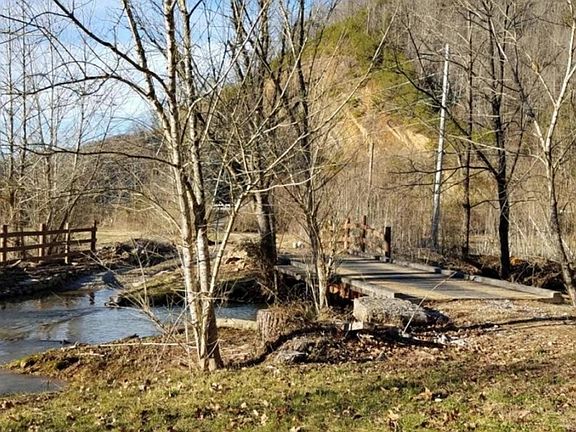 38.5 Acres of very private & beautiful land with 3 merging creeks is where you will hide away from the world in your own lovely holler surrounded by wooded ridges. This is a very unique property that offers everything you want if you love the great outdoors. Don't be blinded by the words double-wide because in what you'll see and feel, you won't be able to find it! You'll enter into large a sun room that's warmed by a wood stove and enclosed in large sliding glass windows. It's a concrete block structure with steps gently rising up into the main house. Beautiful, custom made solid cedar plank taken from the land wraps most all of the structure, inside & out. It's well done with the look and feel of a modern styled cabin. Cedar wood floor covers most of the living area. There are many custom built-in cabinets & shelves. It is an open plan arrangement, a living/dining/ kitchen combo with bedrooms separated to opposite sides--master bedroom & bath left, & 2nd bedroom with a full bath to the right. A bonus room lays in line with the living room and could enclosed for a 3rd bedroom. Thereâs nothing lostâwide open, ample rooms; a custom-built kitchen with a large gas range/oven; a huge, covered back porch; and many creatively provided special features like a whole custom-built closet/storage room off the master. Outside thereâs a deck featuring a wonderful, high-end multi-person hot tub that will literally color your night! Natural field stone, mortared so as to provide the strength and necessary support structure, forms a stem wall to which the building is affixed. Up the hill, on its own driveway is a 12x48 heated building on its own meter w/220-volt service. Marvelous spring water, comes down from the mountain into a 1000-gallon tank into a whole-house, Whirlpool treatment system with a 50-gal water heater. A field, garden boxes, a pole barn & chicken coop are all there too. It's unique, rugged not polished, truly unconventional & good hunting! Ask to add 62+ acres!