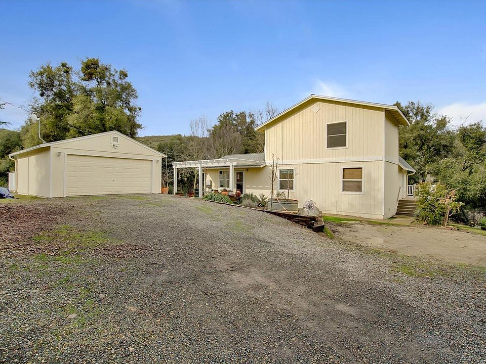 Own a piece of Paradise in Rescue with Weber Creek running through the property year round. Enjoy fishing, swimming, the trickling water and local wild life with BLM behind the Creek offering hiking and horse riding trails. The property has 3 bedrooms and 2 full baths, its own vineyard, raised garden beds, an abundance of fruit trees, a walnut tree, chicken coop and dog run. Enjoy the home's light open floor plan with huge windows and a large deck to enjoy the views. Detached garage accommodates 2 cars. New roof was installed within the last 3 years along with leaf-guard gutters. Owned solar keeps bills low. You will feel like you are in the wilderness and yet are only 20 minutes away from Cameron Park. This property includes two parcels 104-400-030-000 and 104-400-036-000.