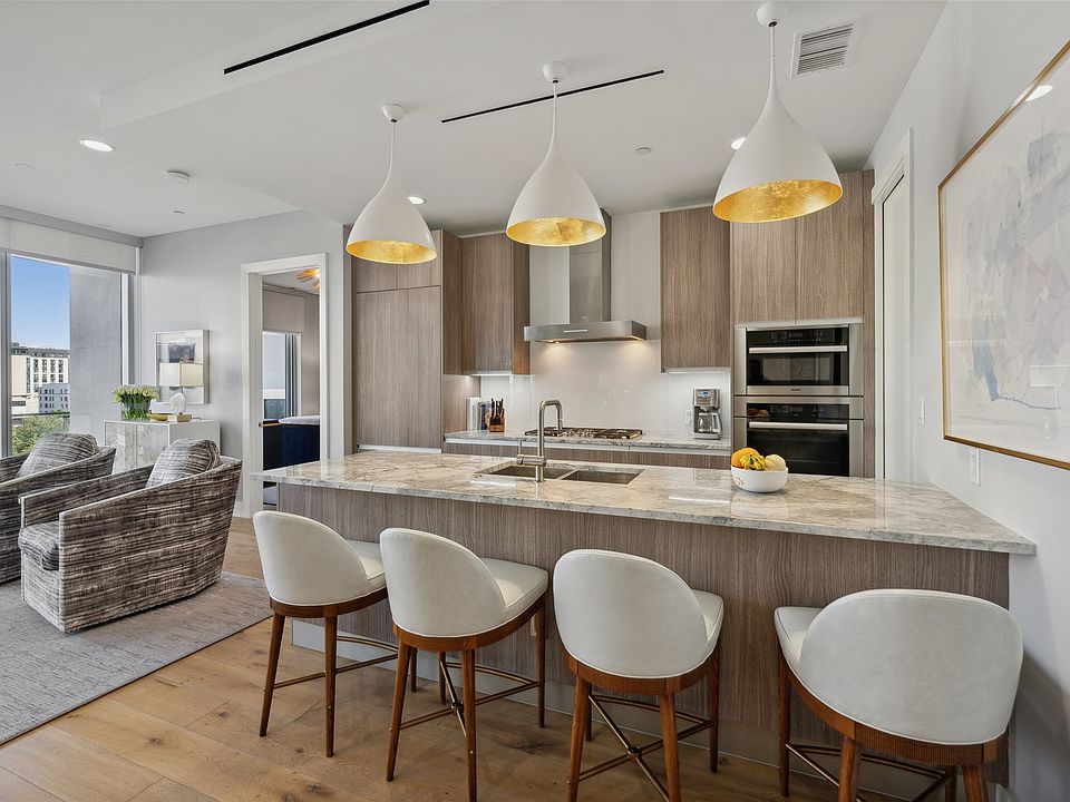 Step into this light-filled, sophisticated Bleu Ciel residence, beautifully designed by interior designer Tobi Fairley. The open, airy layout is complemented by an expansive balcony that seamlessly blends indoor and outdoor living, featuring a cozy fireplace and stunning Northeast views of the Dallas —perfect for entertaining or simply relaxing. This home boasts several thoughtful upgrades, including custom window treatments, designer lighting, and California Closets in both bedrooms and the laundry room, optimizing storage and space. Located in the vibrant heart of the Harwood District, you're just steps away from top-tier dining, shopping, Uptown, Klyde Warren Park, the Arts District, and Downtown Dallas.