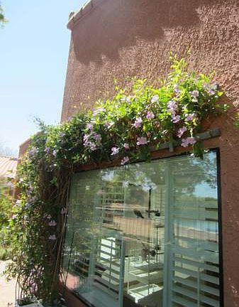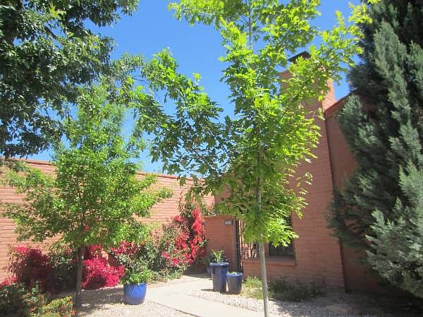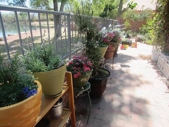 Rare Find! Stunning contemporary on the lake in Hill Farm. East-facing yard with magnificent lake vistas and views of the Rincons in the distance. Hard wood maple floors add a sophisticated touch. Vaulted ceilings and a great floorplan make this home open and airy. Beautifully detailed with mesquite surfaced island in kitchen, track lighting, plantation shutters, newer 15 Seer a/c, and extensive remodeling in the past five years. Wonderfully sited: just a short walk to the remarkable community center which was the original Hill family residence, offering a community pool, spa, and gathering space. Suites in the old homestead are available to homeowners to reserve for their guests. Just minutes from Historic Old Fort Lowell.