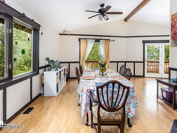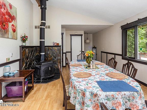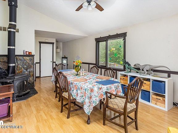 Quaint 3 bed, 2 bath home in Wasilla! 1600 sq ft of bright Open living area upstairs, with vaulted ceilings, wood burning fireplace to keep you cozy and a beautiful kitchen/dining area. Deck on front overlooks great front yard with fenced area, room for RV parking, all surrounded by lush trees. Schedule a showing today!
