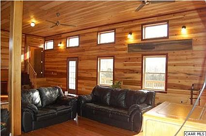 If unique homes captivate you, this is one to put on your short list. Located on 21 acres south of Charlottesville, this oak board and batten home was crafted with great care and skill by the current owner. The owner utilized wood harvested from the property to fashion the interior walls and ceilings. As you enter, the 12' ceilings and wide-open floor plan beckon the artist or musician as a perfect venue to showcase their talent.