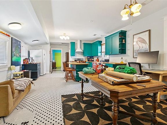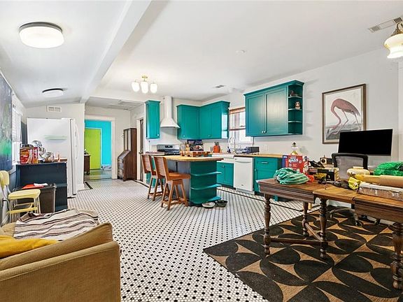 This colorful shotgun-style home offers 3 bedrooms and 2 bathrooms with a spacious, thoughtfully renovated layout. The main kitchen and living area were completely overhauled in 2017—featuring raised ceilings, new flooring, custom cabinets, an added pantry, and opened-up walls for a brighter, more open feel. A closet was added in one of the bedrooms, and the roof was replaced in 2014. Additional support piers were installed under the home in 2022 for extra stability and peace of mind.