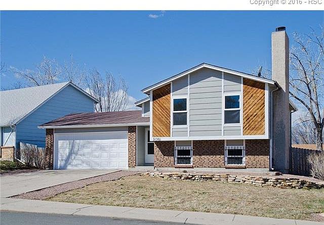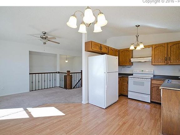 This spacious house is located in a great well-kept neighborhood near Fort Carson with easy access to both Powers and Academy Blvd. Upstairs the home features vaulted ceilings, a large living room filled with natural light from the front windows, and a spacious kitchen with newer appliances and laminate countertops. The master bedroom is located upstairs, along with a second bedroom. Downstairs there is a cozy family room with a fireplace and two additional bedrooms. This home is clean and has been updated with newer brushed nickel light fixtures, vinyl windows and is ready for you to move in and make it your own! Fantastic value for 4 bedrooms!
