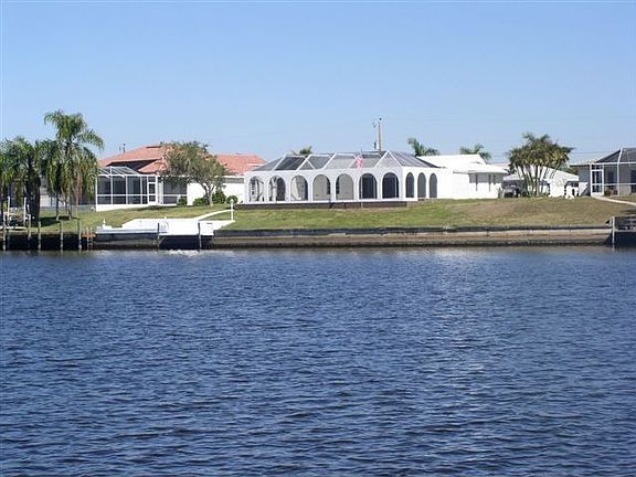 Enjoy beautiful views from the moment you enter through the double entry door over wide intersecting gulf access canals. This home has been remodeled and upgrades include new kitchen cabinets & ceramic backsplash, appliances, new ceramic tile throughout, new landscaping & curbing. The oversized resurfaced pool and new pump and filter with over 1,800 sq. ft. of screened in lanai space brand new travertine pavers & concrete arch walls makes this home great for entertaining and perfect to watch those beautiful Florida sunsets. Other features include screened in entry way, side load 2 car garage, sprinkler system, 2 master bedrooms w/walk-in closets, two concrete docks, 10k lb. boat lift, deco-crete surfaced driveway, brand new roof and A/C. Come take a look at this beautiful home today!