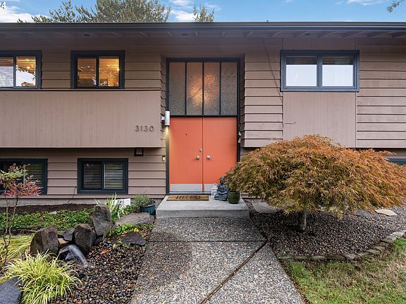Mid-century split-level with Palm Springs vibes in the great PNW! Iconic period details throughout include original grand double doors with cool frosted glass in the welcoming entry and a dramatic fireplace that serves as a striking centerpiece in the living room. Brand new windows and a huge slider leads to the expansive deck with views of the park-like backyard. Updated kitchen has breakfast bar and includes all appliances. The main (upper) level offers an airy open floor plan with soaring views and gleaming hardwood floors. Plus, two bedrooms, including a primary with incredible walk-in closet so spacious it used to be a bedroom (and could easily be converted back). Great family room and another bedroom on the lower level for a separate private retreat. Additional slider off the family room opens to a dry covered patio. Three updated bathrooms. New plumbing. Entire neighborhood is like a midcentury throwback filled with vintage charm. Prime close-in Southwest location near nature, Multnomah Village, freeways, and zoned for Stephenson Elementary! [Home Energy Score = 5. HES Report at https://rpt.greenbuildingregistry.com/hes/OR10233030]