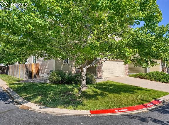 Awesome 2 story home featuring 1,753 SF with 3 bedrooms, 3 baths, central air and 2 car garage. Conveniently located near military installations, schools, park, shopping, hospital, sports complexes, restaurants. Open main level for entertaining with 2 story ceiling, niches for decorating, gas fireplace and lots of Colorado sunshine. Kitchen with breakfast bar and pantry. Upper level features Master Suite with sitting area, large closet, double sinks and garden tub/shower combo, 2 additional bedrooms and full bath. Walkout to the large 10x20 deck with space for tables, chairs and grill. Yard is landscaped with sprinkler system. Rear fenced with side entry gate.