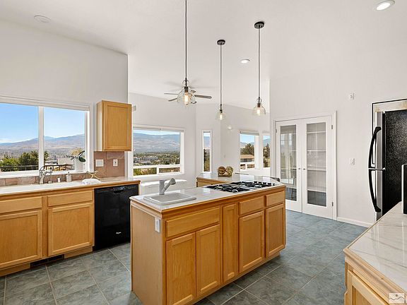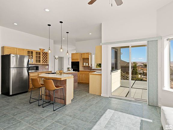 Nestled in the serene hills of Reno, Socrates Drive is a remarkable residence that effortlessly combines elegance with functionality. This desirable home features a spacious three car garage and spans a striking 2,335 square feet, making it the essence of comfortable living, with views on every level as far as the eye can see. As you step inside, you'll be greeted by a warm and inviting atmosphere that flows throughout the entire home with 12-foot-high ceilings throughout., The main floor features beautifully vaulted ceilings with an exposed beam and a unique fireplace in the living room, it also has two bathrooms and two bedrooms (one of them is en-suite), making it ideal for family or guests. The kitchen’s thoughtful design inspires creativity by its functionality, island and oversized pantry. However, the true gem of this home awaits upstairs. Ascend the stairs to discover the luxurious primary suite, a true sanctuary of comfort and style. The primary bedroom offers a serene escape with an attached room, perfect for use as a private office, nursery, or relaxation area. This space also has an extra closet, providing ample storage space. But what truly sets this suite apart is the private balcony that opens to breathtaking views of downtown Reno, the University of Nevada Reno, Mt. Rose, and Ranch San Rafael Park. Newly added features enhance this already exceptional property, including a new driveway and a south-facing orientation that minimizes snow shoveling. The freshly painted white palette invites you to personalize this home to your style. A new stone entry walkway welcomes you, and windows abound, letting natural light and panoramic views flood every room. Abundant lighting, including recessed, sconces, and other unique fixtures, as well as ceiling fans, illuminate the space with a warm and inviting glow. This property is conveniently located within easy reach of Reno's amenities, including shopping, dining, entertainment, and schools. Enjoy the tranquility of a residential neighborhood while staying close to all the city has to offer. Socrates Drive is more than just a house; it's a place to create memories, to entertain, and to enjoy life's finer moments. With its unbeatable panoramic views of the cityscape, mountains and thoughtful design, this home is a rare find in Reno's real estate market. Don't miss your chance to call this exquisite property your own.
