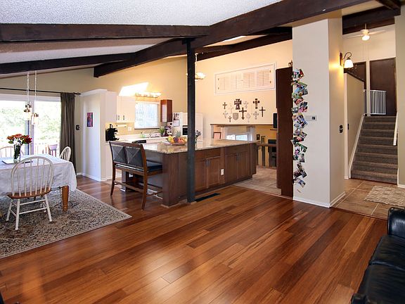 Step inside and fall in love with this beautiful Vista Grande Terrace home! Wonderful upgrades include new carpet throughout, 18x18 tile in the kitchen, huge granite counter island in the kitchen, bamboo wood flooring, updated lighting and many more great features. Walkout to a relaxing deck from the main level or walkout to a lower patio from the family room. Vaulted and beamed ceilings create a truly open feel in this home. Situated on a large nicely treed lot and conveniently located. Prepare to be impressed! The open kitchen design allows for a perfect gathering area for friends and family. Kitchen skylights create ample natural light. An open formal living room greats you as you enter the home. The separate dining area right off the kitchen has easy access to the deck. The family room features a cozy gas fireplace with the walkout to the patio. Three bedrooms including the master bedroom with walk-in closet upstairs. The finished basement area offers multiple options and includes a bedroom and office. Pikes Peak and mountain views from the lot. Storage shed included. Close to schools, shopping, medical office, restaurants, military bases and more. Come check out this awesome home today!