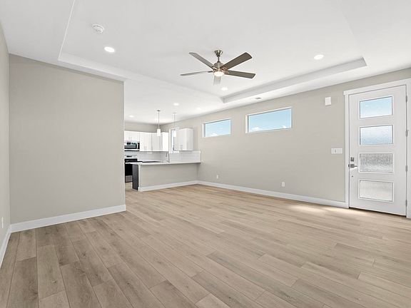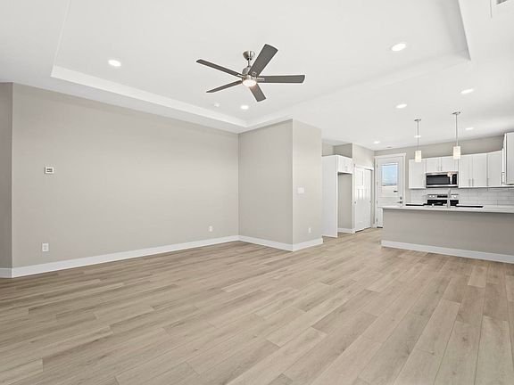 New construction ranch home features 3 beds, 2 baths, 1272 sq/ft, and nicer finishes. Enjoy the open floor plan, 9’ ceilings with tray in living room, central AC, LVP flooring, and an abundance of can lights. The kitchen includes stainless steel appliances, quartz countertops, pantry, and cabinets with dovetail constructions and soft close hinges. The primary suite is fitted with a 4-piece bathroom including a fully tiled shower, split vanity, and large walk-in closet. Outside enjoy the patio, fenced backyard, front landscaping with automatic sprinklers, stucco siding, and a 2-car garage. River Walk subdivision features riverfront trail access & 2 loop lane parks. Home is move-in ready!