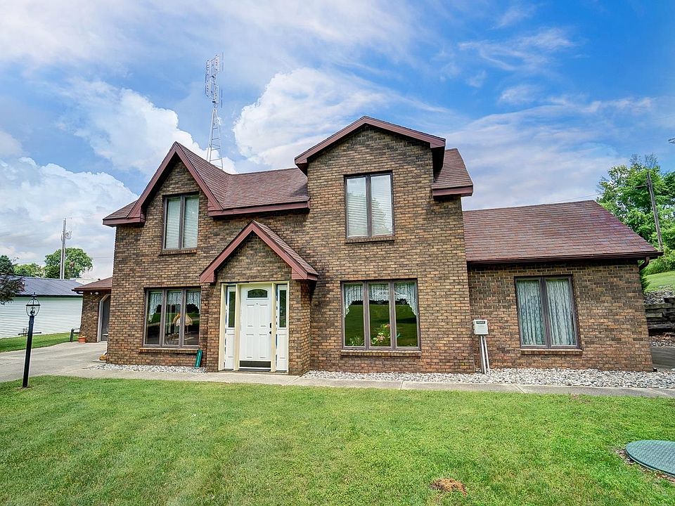 Charming and warm are the words that best describe this brick two story home. When you walk through the front door, the first thing you'll notice are the knotty pine ceilings and the wood wainscoting on the walls. This home has a main level master bedroom with a walk-in closet and two extra-large bedrooms upstairs. Full baths are on the main and upper level. Storage is never a problem here with an over-sized garage, and ample storage closets. The laundry is conveniently located next to the garage and kitchen. The owner has replaced the exterior doors and well pump. Recent improvements are a keyless entry to the garage door; a water softener; a water filtration system in the kitchen; tv antenna, ceiling fans; exterior lighting. All this, in the perfect location - peaceful rural surroundings, just a few minutes from Angola and the lakes.
