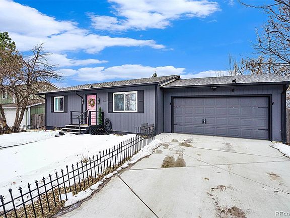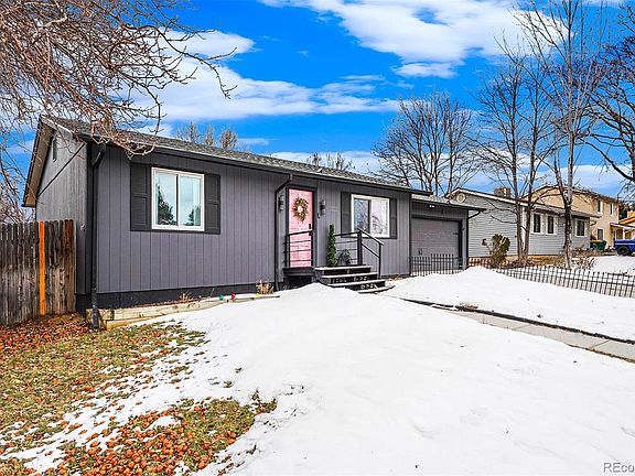 Uber cool meets suburban living. This Broomfield home is sure to stop you in your internet scrolling tracks. From the moment you first see this property, there is just something magnetic about it. Maybe it's the moody dark paint. Maybe it's the vibrant pink door that makes you smile. Maybe it's the quiet cul-de-sac location. One thing you do know is you can't wait to see more! As you walk up to the front door, you are greeted by a large fenced-in front yard! The pink door welcomes you into your dream home! With brand new LVP flooring, you notice how incredible this home is from the moment you walk in! The front picture window drenches the home with light. Then your eye travels to the custom built-in shelving around the cozy fireplace! It's the perfect living room to relax after a long day at work or binge-watch your favorite Netflix show. As you travel down the hallway, the powder bath will surely make you smile! With the most fabulous wallpaper, this ultra-fun bathroom perfectly complements the living room. With a brand new primary bedroom with a newly added primary bathroom, it's the perfect bedroom setup! There is even fun wallpaper tucked in the closet, ummmm how neat is that! With another bedroom viewing out to the street, it would be the perfect work-from-home setup! The kitchen, boy, is this fun! With brand-new appliances and an updated feel, there is so much to love about this space! With all the extra storage and wraparound bar, talk about an entertainer's dream! Off the kitchen, you will find the attached two-car garage, love that! And basement access. With three more rooms and a den, this is all the bonus space you could ask for! With brand-new carpeting and paint, this space is ready to be transformed into your own! Now for any dog lover, this backyard is it! With lots of shade for the warmer summers and grass for playing fetch, any dog would be happy to call home sweet home! This home is so special, you have to see it for yourself!