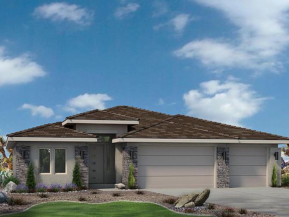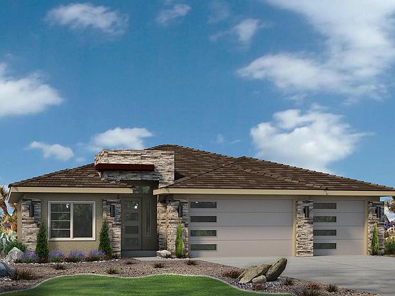 primary "Sweet!" Separated from the other three bedrooms, this primary retreat is fabulous.. The bathroom's standard features include double sinks, a large shower, a soaker tub. Two walk-in closets provide substantial storage space. The cook of the family will appreciate all the counter space in the kitchen to prepare all those delicious meals. One won't have to traverse to the garage for food storage thanks to the expansive pantry right off of the kitchen. The laundry room is located ideally and readily available but isolated enough so as not to hear the constant humming of the machines. A spacious entryway is right off the optional fourth bedroom. The centrally located guest bathroom caters to guests' needs while also maintaining your privacy. A generously sized dining room area will comfortably seat any size party you may have. The icing on top of this beautiful home is the spacious covered patio out back in which you can sit and enjoy the beautiful red rock scenery.