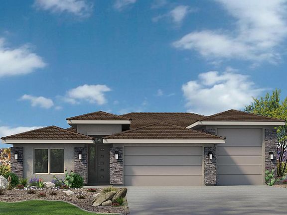 This floor plan has an RV Garage to store your RV, Boat, or other toys!. The garage leads right into the heart of the home. With the laundry complete with ample counter space for loads of laundry on your right, the large corner pantry in front of you, and the kitchen to your left. You will be able to keep from tracking the outside into your home. The kitchen has great views of the rest of the house centered on a spacious island complete with double sinks and a dishwasher, allowing you to work and keep an eye on the little ones or converse with guests. With all three bedrooms, you can stay connected while maintaining privacy with everyone. The primary suite is large and spacious. Lots of natural light will pour in with strategic window placement, giving the suite a relaxing and natural feel. Top it all off with a beautiful covered patio perfect for grilling and enjoying the great weather St. George has to offer.