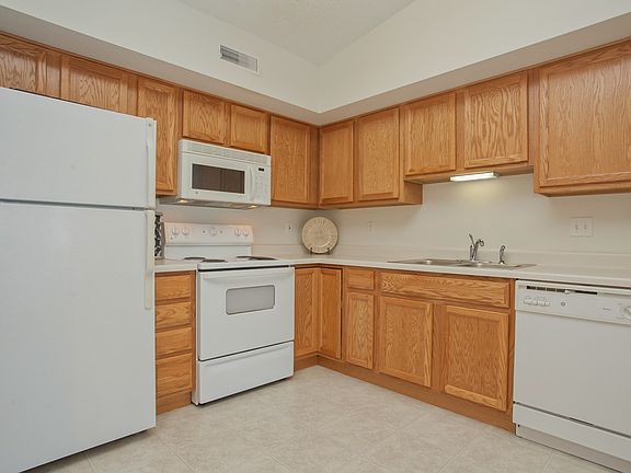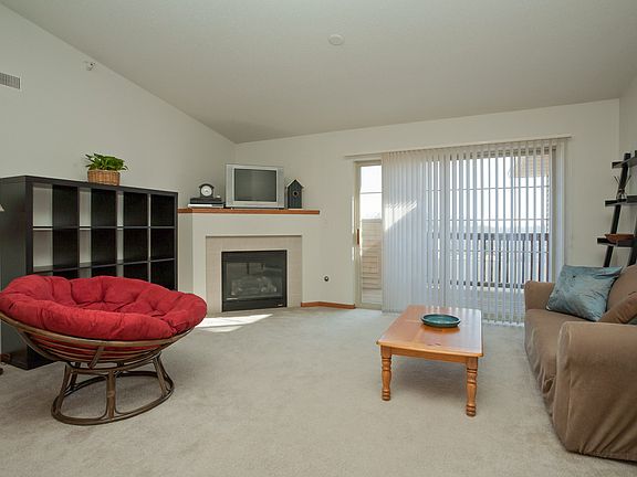 Spacious 3rd floor condo, 2 BR, 1 Bath condo with open floor plan, vaulted ceiling, deck overlooking green space, and gas fireplace. One person owner. Eat-in kitchen, all appliances are included. Close to shopping, restaurants, work-out facilities and other amenities. One car detached garage. No dogs allowed.