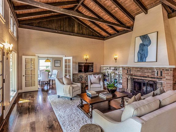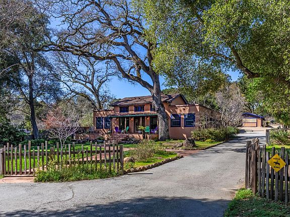A rare downtown property on one fully fenced acre with rear access gate to Prospect Street. Spanish hacienda main home with walnut floors, huge living room with fireplace, formal dining room, separate office, remodeled gourmet kitchen, and 2 bedrooms, each with en suite bath. Custom stained glass window, stained glass ceiling lights, decorative Spanish tile accents, and rain chain downspouts. Detached Accessory Dwelling Unit with full kitchen and newly remodeled bath. Huge 3-bay workshop with 4 roll-up doors is perfect for a collector or hobbyist. 1985 barn has 2 stalls, tack room, feed room, hot water, fly system, and paddocks. Irrigated grounds and sprinklered paddocks, beautiful gardens, and fruit trees. House remodeled in 2003, including foundation and seismic retrofit.