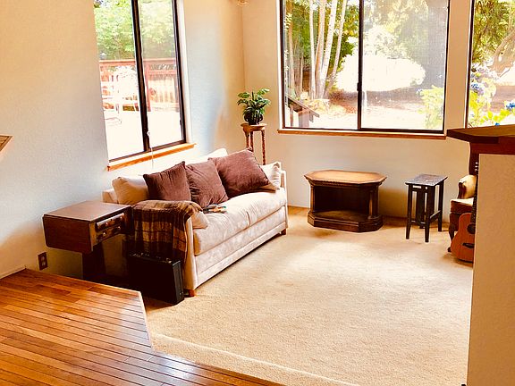 This is a beautiful home; set back from the main road with a huge wrap around deck, upstairs lanai, sunken living room, vaulted ceilings, fireplace, lots of natural lighting on two acres in the sunshine with impressive redwoods trees. Sporting a new roof, new heating system, new submersible and relay pumps, deacidifying water softening system, storage tank, new water heater, new leach field, new paint inside, new stain outside, beautiful wood floor, refinished kitchen cabinets and a serene upstairs view. Detached 1 car garage with shop plus a cozy, rentable 2 bedroom 1 bath apartment make this property ideal as either an investment opportunity or, for providing additional family housing. At about a mile and a half inland you can hear the ocean while enjoying the sunshine. The home has a big, flat usable front yard and great foliage throughout, with surrounding trees providing virtually complete privacy and wind break, while fruit trees add a country touch. The grounds are truly beautiful and the house is warm, spacious and extremely well constructed.
