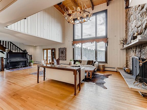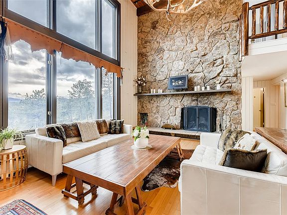 Genuine Colorado Living on 27+ private sunny acres of horse property just minutes from shopping, amenities and top rated schools. Beautifully upgraded 5,828 sf home with modern rustic character and historical fixtures. 5 spacious bedrooms/ 4 bathrooms. Upgraded master suite. Kitchen features granite counter tops, copper farm sink, copper vegetable sink, slate tile, hickory cabinets, wine cooler and stainless steel appliances. Massive rock fireplaces, 3-story dumb waiter, hardwood floors, redwood deck, white capped views of Mt. Rosalie and Mt Logan. Fully fenced usable acreage with ability to rotate pasturage. Domestic well and seasonal pond. Situated in natural wildlife habitat. Newly constructed 1,150 sf shop; heated with cement epoxy floors and 220 electric. Hiking, biking, horseback riding just 2 miles away at Staunton State Park. No HOA or covenants. 1 year home warranty
