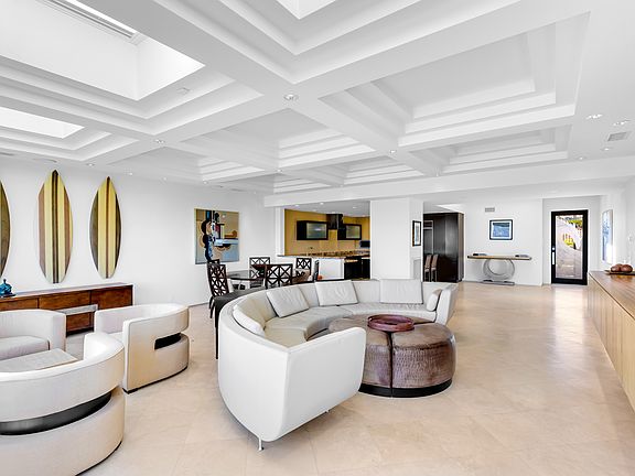 The spacious living and dining areas flow seamlessly to the backyard, where coastal sunsets and sweeping ocean vistas set the stage for relaxed evenings and entertaining. With its thoughtful single-story layout, this home offers comfort, functionality, and style in every detail.
