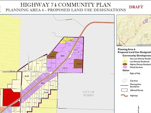 *** Land opportunity with loads of potential in Perris, CA. 6 contiguous parcels for sale totaling nearly 13 acres of residential land. See APNs: 313-030-007, 313-030-008, 313-030-006, 313-030-005, 313-030-004, & 313-041-007. Zoning allows for up to 6 units per acre and TR-22910 was drawn up with the city to subdivide the area into 78 +/- units. Located just west of Downtown Perris, and minutes away from the 215 and 15 Freeways allowing for easy access to all of Southern CA. No to mention all utilities are adjacent to the land. The site is right in the path of growth just a block North from Planning area 6 for the Highway 74 Business Corridor Community Plan that is in progress to connect Lake Elsinore and Perris CA. The Highway 74 Business Corridor will be a vital by-pass in between the 215 and 15 Freeways which is expected to bring a lot of development to the area increasing the demand for housing. This is a must see opportunity worthy of serious consideration. Come VIEW and make an OFFER TODAY ! ***