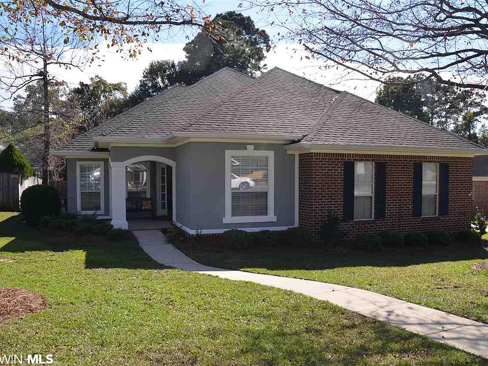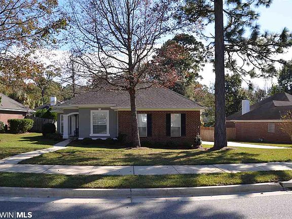 Immaculate home in the Spanish Fort school system with a level fully fenced backyard, irrigation system, and large covered patio. Located on a culdesac lot in the Oakridge subdivision - which is close to everything in Spanish Fort and has easy access to Mobile. There have been many recent updates: granite counter-tops, stainless steel kitchen aid appliances, and tile flooring in main living areas were all installed in 2014. Gas water heater was installed in 2014. Hurricane fabric covers for all windows. Attic insulation updated to R32 in 2015. The layout of this home lives large with an open concept kitchen/breakfast area/living room that also boasts a large step-up bar. Four bedrooms, two bathrooms and a separate dining room. Master bathroom is enormous with cathedral ceilings, a soaking tub, separate shower, two closets, and plenty of counter space and cabinetry for stoaring all those bathroom essentials. The laundry room is generously sized with cabinets and a utility sink. The side entry double garage has a work area and built ins for tons of additional storage space. The double gate is optimal for behind the fence storage. This home is well cared for and it shows!
