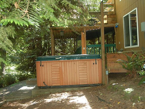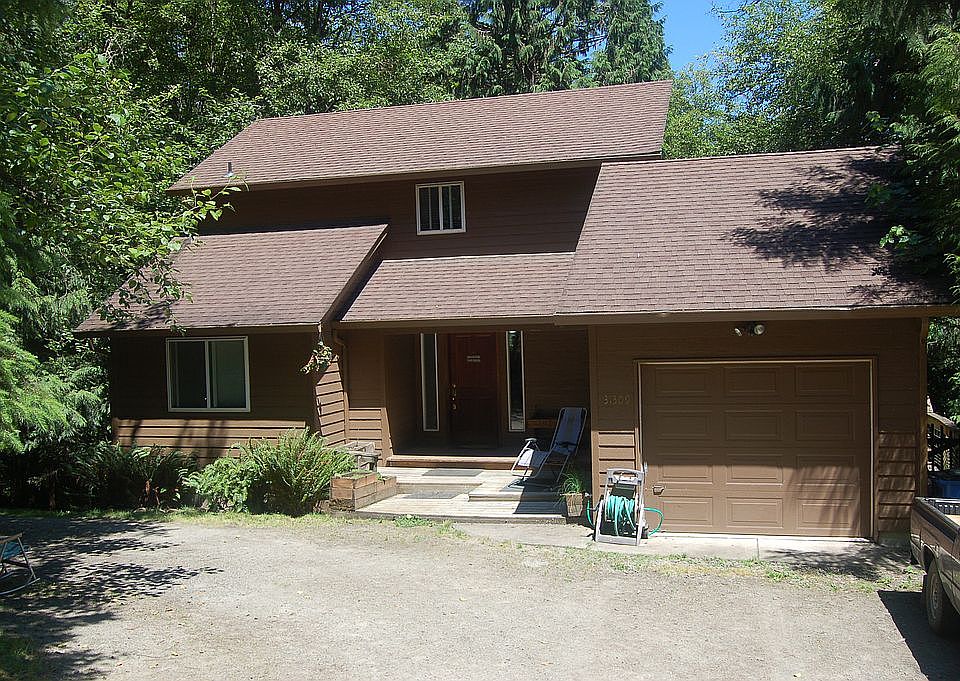 Secluded 2600+ sq foot custom home in Ridgefield. Live on a 5.49 wooded acre parcel off of LaCenter Road just minutes from I-5 for an easy commute. Plenty of windows and skylights allow you to enjoy the view. Experience serenity from your hot tub in the back yard or from the three tiered upper deck. The main living space has an enclosed book shelf / storage / entertainment system built-in along with a wood stove. The large upstairs loft has a full bathroom and walk-in closet. There are 3 decent-sized bedrooms plus a bonus room that could easily be converted into a 4th bedroom. The large family room in the daylight basement has a wet bar and is wired for surround-sound with built in ceiling speakers. The functional kitchen has a convection oven with flat top stove, built in microwave and a good sized pantry. Plenty of storage space. The fenced side yard is perfect for your pets and has a covered, rain protected area. The main level has a porcelain tile floor with a custom entry design. There is a detached double car-sized wood shed / outdoor storage area. Take NW 18th South off of LaCenter Road. Follow the road 1 mile keeping to the right. It is the last house. Shown by appointment. Agents protected.