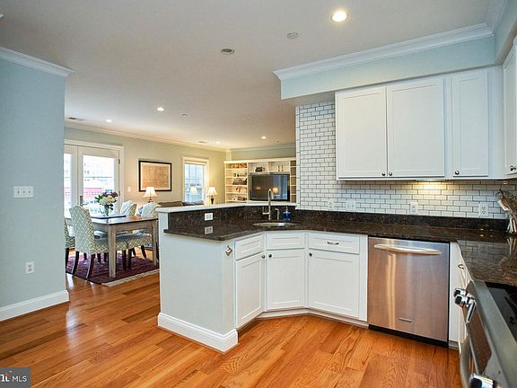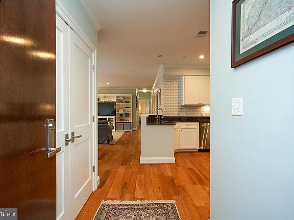 Located in heart of Clarendon, 3 blocks to metro, this stunning 2BR/2BA+Den is truly one of a kind. Open floor plan with gleaming sand in place oak flooring, gourmet kitchen with professional grade stainless appliances, wood cabinetry, and granite countertops. Light filled living/dining room with french door opening to private balcony. Master bedroom suite with professionally designed walk-in closet, and luxurious marble bath with double vanity and glass enclosed shower. Second bedroom, another marble full bath and den complete this condo. The den has glass pocket doors offering privacy and laundry offers full sized equipment. Solid core wood doors, wood cabinetry and crown moldings are some of the upgraded features. One covered parking space (#10) is included plus 1 parking permit passes for 9th Rd in front of building. This wonderful condo is in a unique boutique building of only 14 units, with elevator access and offers an upscale quiet getaway from the busy city life a block away.