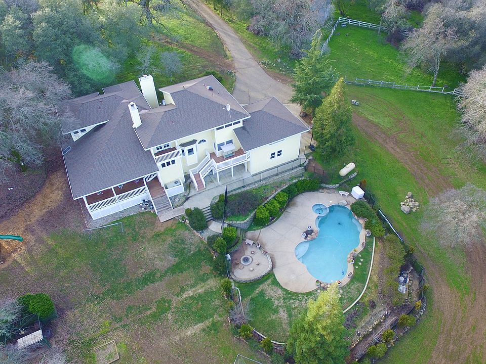 Check out this amazing newly updated home on 10 acres w/ park-like grounds, Huge swimming pool,putting green and seasonal creek. This home has it all. Ultimate COUNTRY KITCHEN w/ VIKING stove Quartz counters newly updated bathrooms. 2nd office area, 3 ensuites, rec room, and family room w/ 2 story river rock mantle to the soaring ceiling. Master bedroom wing with extra large bath & screened porch. Home office w/deck & Sierra Views.