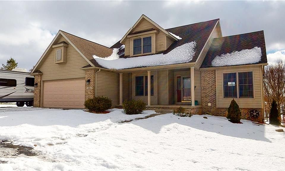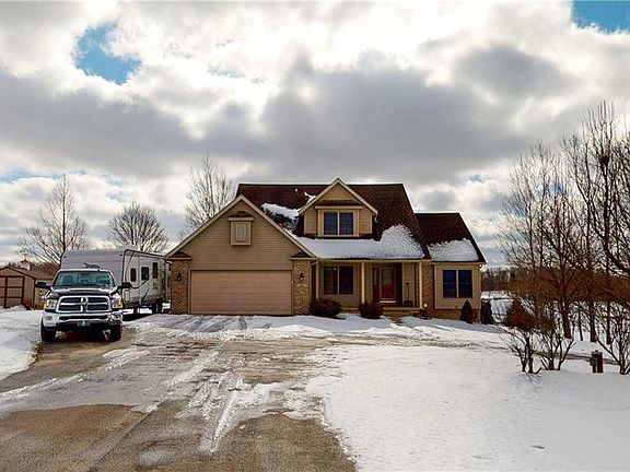 Beautiful 4 bedroom, 3.5 bath home situated on 2 sprawling acres. Eat-in kitchen has new appliances & 2-sided fireplace open to family room w/vaulted ceilings. Sliders in kitchen & family room lead onto the spacious back deck. 1st floor vaulted master suite & 1st floor laundry. Finished basement features bedroom, a 2nd family room w/wet bar & full bath. Freshly painted interior. A 3-car garage & spacious out-building will provide ample storage & help to keep your outdoor equipment organized.