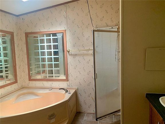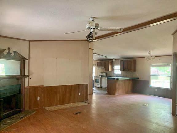 Peaceful country property with 3BR, 2BA double wide has an attached two car garage, and an amazing 2,183 square foot metal barn/RV shed with electrical box. The right side of the metal building is a 888 sqft shop. Left side of the barn is 740 sqft and was being made into an apartment, with kitchen and bathroom. The vacant open space in the middle is 555 sqft. The double wide is 1539 sqft heated with a covered front porch and decked back patio. There is chain link fence for pets in the backyard plus pear and pecan trees around the property. The home has a range/oven, refrigerator, dishwasher, jacuzzi tub, and fireplace. INVESTORS WELCOMED!