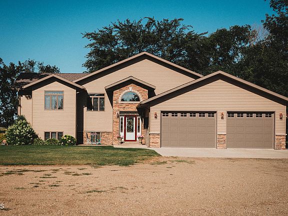 This is the one you have been waiting for. The current homeowners have put in so many memorable years of love into this 4 bedroom 3 bath home. This split level home features an attached three stall insulated and heated garage, hardwood floors, hickory cabinets in the primary suite, kitchen and main floor bath. The upper level has an open concept with a beautiful view of the Jamestown Reservoir. There are three bedrooms on the main floor with two full baths. The lower level has floor heat, one bedroom, spa room with a hot tub (could potentially be turned into a 5th bedroom), summer lower level kitchen and a large family room with plenty of space for entertaining.Yes, there is a shop! The 30x54 insulated and heated shop has so much to offer. This shop has a kitchenette, 3/4 bath, laundry hookups, floor drains and two sources of heat (NG floor and NG overhead). There is a kitchen style sink built in to birch cabinetry next to the shop office area. The 10x10 commercial overhead doors are equipped with 3 inches of insulation. The exterior walls are super insulated with the interior covered with a corrugated steel for easy cleaning and extra finish.There is an additional 24x28 garage with a 16 foot door and 10 foot side walls with room enough to fit a skid steer. The yard has over 500 trees, which allows for complete privacy and breathtaking views. Some of the trees/plants consist of Silver maples, Ash, Little Leaf Linden, Apple, three species of evergreen (Blue spruce, Black Hills Spruce and Ponderosa Pine), lilac bushes, Nanking Cherries, rhubarb and grape vines. The yard is plumbed partially underground for the plants around the house and partially over ground with an irrigation pipe to water the trees. The 25x50 garden spot has recently had 6 tons of sand added to the soil for the perfect irrigation and aeration.
