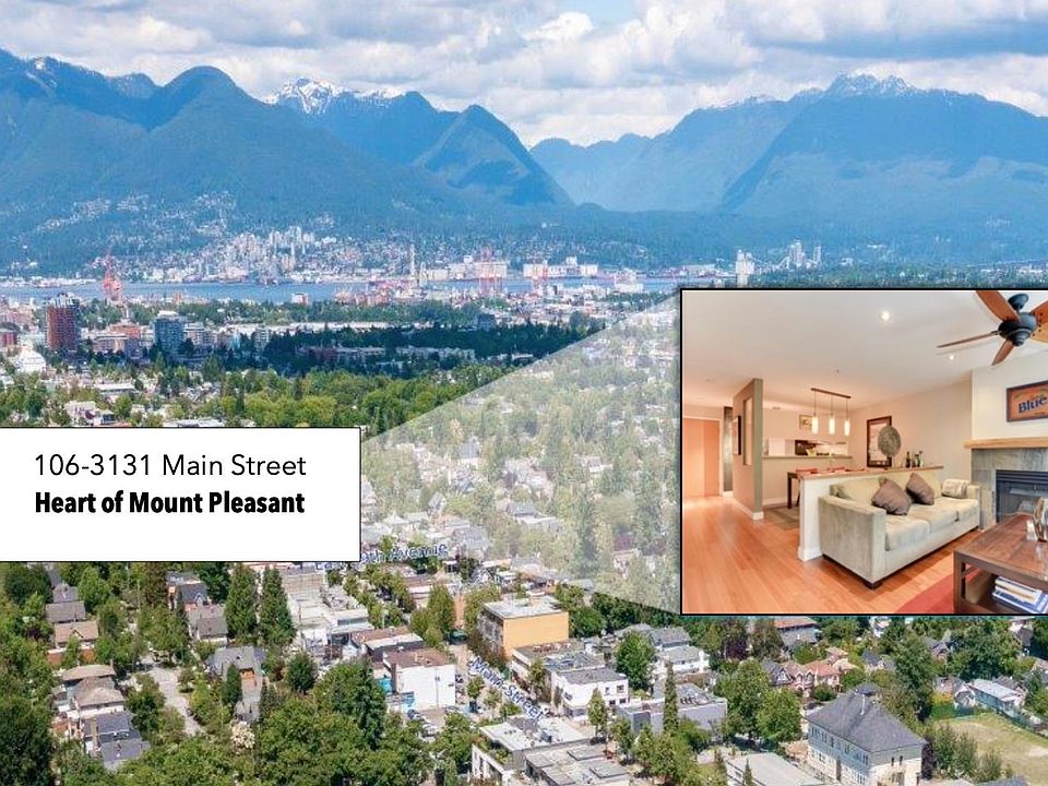 LOCATION, LOCATION!! Steps to endless options of restaurants, cafes, shopping... Modern 1 bdrm & large den in HEART OF MOUNT PLEASANT. Beautiful, SPACIOUS home w/HARDWOOD FLOORS, modern kitchen w/Corian counter tops & spa like bath w/heated floors, soaker tub, elegant vanity. OVERSIZED MASTER BEDROOM has built in closets. Well laid out home is perfect urban oasis for a busy professional or a small family - EXTRA LARGE DEN can be used as a 2nd bedroom! Open concept floor plan with GAS FIREPLACE is perfect for entertaining. This is FULLY RAIN-SCREENED building w/updated roof & plumbing for additional peace of mind and a healthy contingency reserve fund! Comes w/ in-suite laundry, secured parking & locker. PRICED TO SELL! Amazing location! Call now for private viewing.