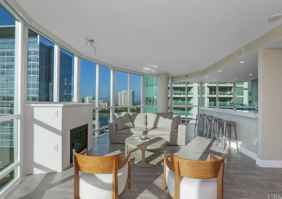 Captivate yourself with breathtaking panoramic city and mountain views as well as floor-to-ceiling windows with the most amazing sunsets. This unit is one of the most desirable layouts in the building with gorgeous vistas in every part of the home. The views are spectacular and include the Irvine cityscape, the Saddleback Mountains, Catalina Island, and the evening fireworks at Disneyland. Located on the 14th floor in the West Tower, this is one of very few units in the building that has been completely renovated (2016). The home features brand new flooring throughout, a chef's kitchen with brand new kitchen cabinets, quartz counters and a waterfall island. The unit is technologically updated, featuring two nest thermostats, climate control, LED lights throughout, and a retractable TV from the fireplace. The bathrooms have been renovated with the highest grade material. The Marquee is centrally located within walking distance to shops, restaurants and markets. This 24-hour guard-gated community offers a community pool, spa, billiards room, gym and plenty of outdoor BBQ stations. It is just minutes away from Fashion Island, South Coast Plaza and the 405, 55, 73 & 5 freeways.