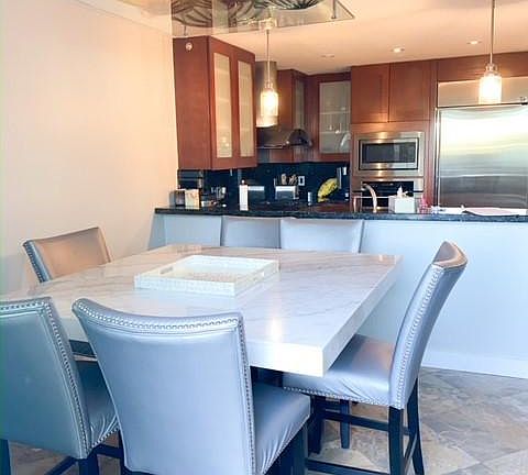 Welcome to Marquee Park Place, a 24-hr guard gated high-rise community in the heart of Irvine. Centrally located near the 405, 241 and 55 freeway, South Coast Plaza, John Wayne Airport, Fashion Island. This unit is one of two with the unique floor plan that is two-story with three balconies and its own individual laundry room. The home feels very spacious, featuring two bedrooms on the second floor that are both master suits with their own private bathrooms and walk-in closets. Central Air Conditioning with nest thermostat on both first and second level. Surround sound speakers. The first bedroom has a king size bed, and the other bedroom has two queens. The first-floor features tile flooring, concrete stairs, carpet in both the bedrooms with a half bathroom downstairs. Other features include water softener, storage unit, two underground side by side parking spots, community pool, spa, work out room.