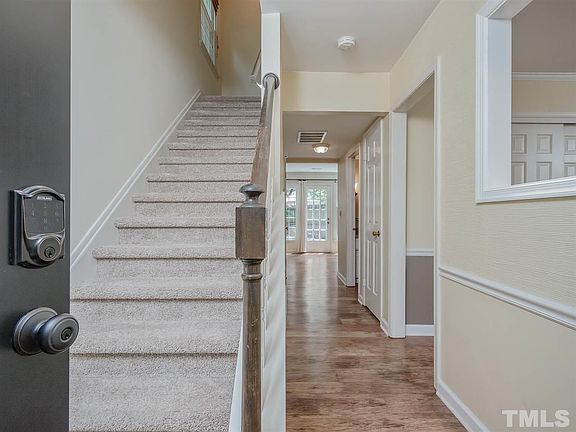 Sophisticated, well-maintained end unit tucked away in desirable Meredith Townes. Quiet, established neighborhood w/ unbeatable access to NC State, Rex, Beltline, shopping, dining. Upgraded luxury vinyl tile plank throughout main. New stainless dishwasher, range. Tiled patio, front stoop. Privacy fence. 2 main floor closets + pantry. FR built-ins. Ceiling fans. Elfa storage conveys (approx. $3000). Refrigerator. Community saltwater pool, dog park, outdoor storage area. HOA includes cable, water, sewer!