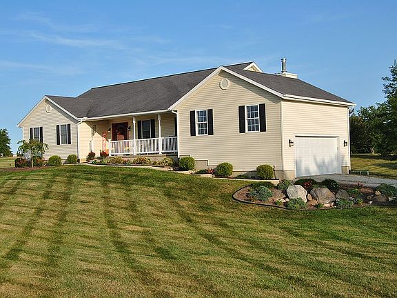 Motivated Seller!!! Beautiful, move in ready, Ranch Home with front porch and back deck in country setting. Look no further this is the home you have been looking for! Impressive and spacious 3 bedroom and 3 bathroom, 2,092 sq ft home with additional 2000 sq ft finished walk out basement that leads to stamped concrete patio. Home is situated on just over 2 acres in Cedar Cliff Local School District. Enjoy a cup of coffee and watch the sunrise on the back deck or the evening sunset from the front porch from your favorite rocking chair! The master suite is very spacious at 23'x13' with a new completely remodeled en suite bathroom with custom 4'x5' tiled shower with 8" rainfall showerhead and custom double sink vanity. The additional 2000 sq ft fully finished basement provides plenty of extra space for entertaining!