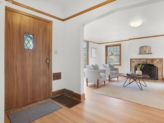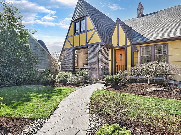 Grant Park Tudor sits on oversized lot (6496 sq ft), a mere stroll to the park. Beautiful refinished hardwoods thru-out. Desired circular floor plan on main with formal entry. Generous-sized LR / DR and kitchen. Newly remodeled bathrooms on each floor. Exceptional finished lower level with family room, bonus area & 4th bedroom, perfect for guests. Lovely rear patio graced by mature landscape with 4-zoned sprinkler system. Hi-eff gas furnace, central AC. Sturdy garage. This one is very special! [Home Energy Score = 3. HES Report at https://rpt.greenbuildingregistry.com/hes/OR10205255]