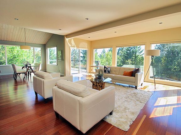 Floor-to-ceiling windows flood the main floor with light. There are views and nature out nearly every window. Thoughtful high-end finishes, wood floors and 5 fireplaces add natural warmth to the contemporary lines.