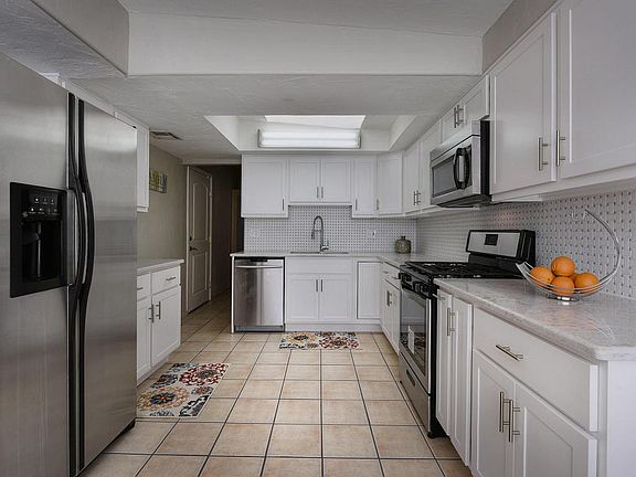 Beautifully remodeled 3 bedroom,2 bath, 2230 sqft home. NEW Kitchen cabinets & Natural Quartz counter tops. New carpet in bedrooms & family room area. Stainless steel appliances. Both bathrooms updated. Huge family room with fire place, formal living room or maybe a dinning room. Back yard Oasis with sparking pool, split yard with 2 patio areas 1 enclosed with rod iron & lockable screen doors, Gazebo, fruit trees, planter beds, storage shed and a New dual gate for easy back yard access, room for your RV too! Roof repairs completed with a 2 year warranty. All this and NO HOA Fees!!! This home is a must see. Close to bus routes, shopping, etc.