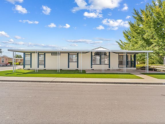 This 3-bed, 2-bath home in the highly desirable 55+ Westport Village Adult Park in SW Visalia, CA offers comfortable, worry-free living in a fantastic location. Situated on a corner lot, you'll immediately be drawn to the charming covered front porch and the convenient storage shed. Since the original listing, the seller has refreshed the exterior with a full paint job (including all doors) and replaced the guest bathroom's shower with a new model. Step inside to a spacious living room that flows into a cozy breakfast nook ideal for everyday meals or casual entertaining. The kitchen offers generous counter space and storage, making meal prep effortless. Two guest bedrooms share a well-appointed full bath, and the primary suite is a standout, featuring a soaking tub, a separate step in shower, and a large closet. Residents enjoy access to community amenities such as a park, pool, and clubhouse perfect for staying active and social. Located in Southwest Visalia, CA, this home gives you the convenience of being close to local shopping, services, and the easygoing charm of the Visalia area.