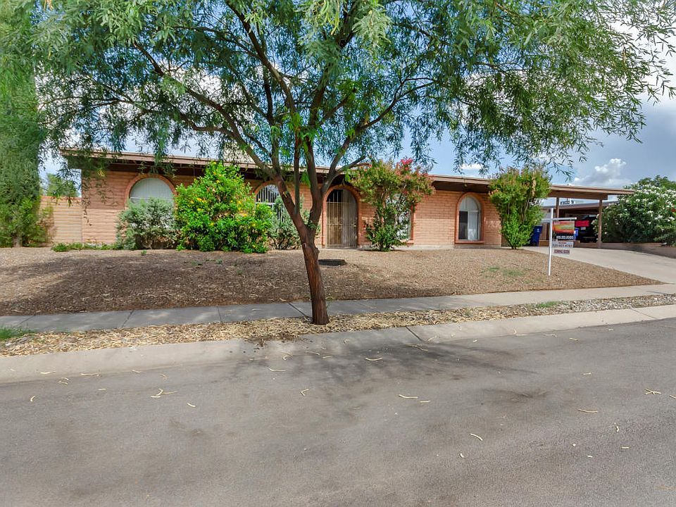 This classic beauty in popular Hearthstone Hills is tucked away on a quiet cul-de-sac yet close to great shopping, restaurants and other East side amenities. The open floor plan includes a huge eat-in kitchen with plenty of cabinets, an open living room and a covered porch that serves as a bonus Arizona room. The bonus room leads to the large backyard with a built-in BBQ grill for year-round entertaining. Arched windows and 2 sets of sliders let in plenty of natural light. Make the most of the spacious yard with its mature plants and Rincon Mountain views to the East. With a workshop on one side of the yard and a huge shed on the other, there's tons of storage for all your toys! No HOA and just a block away from The Loop bicycle/jogging path and Michael Perry Park.