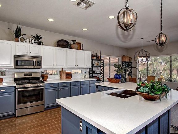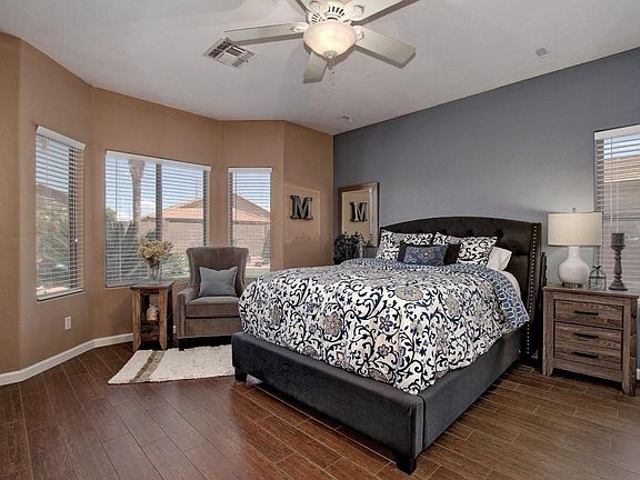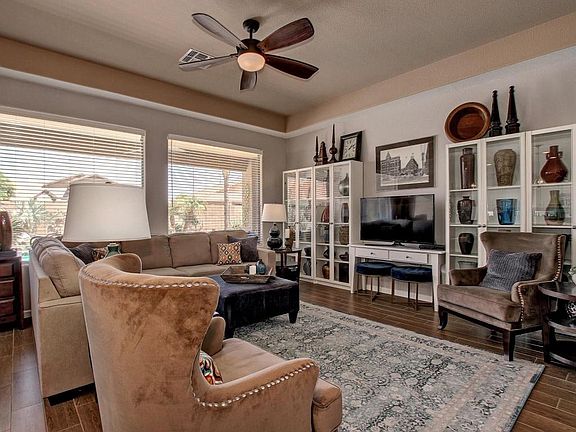 This home screams beautiful desert retreat! With easy access to the AZ Loop 202 or US-60, this beautifully landscaped and stylishly appointed 3 bedroom, plus den, 2 bath, 3 car garage Mesa home is filled with all the charm and detail you have been looking for. Light and bright from the moment you walk in the front door you notice the beautiful wood plank like ceramic tile floors, spacious living area, an upgraded kitchen that aspires to any home chef's dreams with quartz counter tops and high end stainless steel appliances. The large master bedroom where the tile continues into a relaxing master bath. The large desert oasis backyard features beautiful landscaping and grass area, fruit trees, a large covered patio and a refreshing Pebble Tec pool. Come enjoy the true desert southwest!