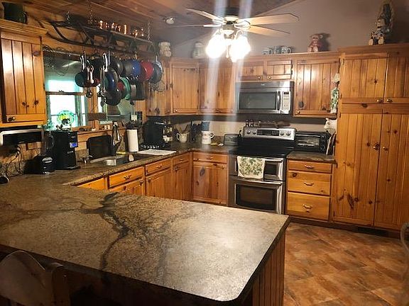 This property has a ton of potential. There is fenced pasture, woods, pond, creek, barn , additional outbuilding and a log cabin basement rancher with fabulous mountain views.