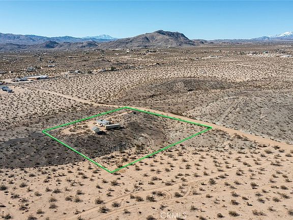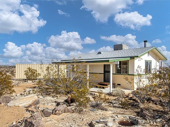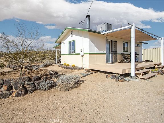 Most Affordable Fully-Permitted Hillside Home in Joshua Tree: Rare hillside house with no neighbors on adjoining lots and views for miles! Morning coffee on the front porch to watch the sunrise illuminate the mountains in the National Park or sit around the firepit at night and gaze at the stars and galaxies glimmering above. Remote and rural yet only minutes to downtown Joshua Tree. Situated on an ancient volcanic, basalt hillside, above the scattered homes in the distance below. Similar locations and privacy are rarely offered at such an affordable price. Spread over 2+ acres, the home is zoned SFR and can be used as a primary residence, vacation home, short-term or long-term rental; Sellers used it as their private retreat for respite from the city. Purchase includes a permitted container for extra storage or a workshop that has been outfitted with electricity, along with an additional storage shed with a finished paver floor that can be used as a rustic office space, art studio or practice room for your favorite instrument as the departing owner preferred. Home has central AC/Heating to get you through summer or winter, along with a wood stove (that can be easily removed if desired to expand the footprint of the living room for extra living space). Internet is DSL – not satellite dish – for a stable connection. While the property includes many attributes, one of the finest are the panoramic views forever that will never disappear.