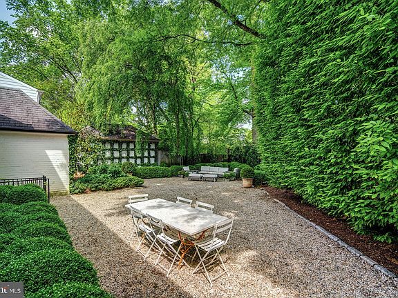 This show stopping beautifully updated colonial in Chevy Chase, DC is Architectural Digest worthy and has been reimagined making it a jewel box of a home. Situated on a south-facing corner lot and boasting exceptional curb appeal with the story book white brick exterior and picturesque rose vines climbing up its walls, adding an enchanting touch of natural beauty. The front exterior also features a century-old Southern Magnolia, Saucer Magnolia tree over the driveway, two Cherry trees, and mature landscaping. The gorgeous landscaping eloquently complements the breathtaking interiors, highlighting beautiful hardwood floors, oversized windows, and custom millwork. The sun-filled foyer opens up to the living room through black lacquered pocket doors. Featuring a wood-burning fireplace with an original hand-carved mantle, the living room is the epitome of feng shui and elegance. The room seamlessly flows into the stunning private garden designed by Lara Morabito Gardens, through a pair of custom double-Santa Barbara bronze doors. The four-season sunroom off the living room has windowed walls on three sides, built-in bookshelves, and a door leading to a secluded part of the garden, perfect for grilling, gardening, a play set and more. The gourmet kitchen underwent a full renovation in 2016, as featured in Washingtonian, and now highlights Thassos marble countertops, Barber Wilsons of London custom faucet and fixtures, custom flat panel cabinetry by Boffi, marble floating shelves, Bertazzoni Italian Oven/Range, and a Miele refrigerator, dishwasher, and hood. The large picture casement window above the sink was custom designed made from hand forged bronze and opens up to the garden. The custom-designed hand-forged bronze door leads to the breezeway and gives access to the single-car garage. A black lacquered pocket door leads to the sunlit dining room with a bay window and detailed moldings. The powder room boasts a large casement bronze window, a Waterworks marble-clad vanity, and Farrow & Ball wallpaper. The second level of the home was remodeled in 2017 and features three bedrooms and two full baths all with Waterworks fixtures and finishes, including the primary suite with a spa-like ensuite. Fixed stairs lead to the third floor with two additional bedrooms, one with built-in bookshelves and an extra-deep closet. Extensive storage is accessible from the hall and one of the bedrooms. The walk-out lower level was completely remodeled in 2014 and now features a spacious paneled family room with nearly 8’ ceilings, laundry room with marble countertops, loads of cabinetry, functional open shelving, large laundry sink, Miele washer/dryer and a wine refrigerator. Completing this level is a potential sixth bedroom and full bath, perfect for an in-law or au pair. The exquisite fenced-in gardens serve as an extension of the home highlighting mature trees with a pea gravel foundation and a cobblestone border. The garden is further accentuated by structured rows of Boxwoods, hydrangeas, peonies, mature perennials, square grids of mature English ivy and American wisteria, providing a true French-inspired oasis. The garden is the perfect space to enjoy morning coffee or afternoon drinks in the summer, while the outdoor high-end lighting and speaker system makes it an excellent space for evening entertaining. This spectacular home is complete with a detached single car garage with original carriage doors and off-street driveway parking. Located on a tree-lined street in Chevy Chase, DC, this home is walking distance to Rock Creek Park, Broad Branch Market, and is within close proximity to the restaurants and shops on Connecticut Avenue.