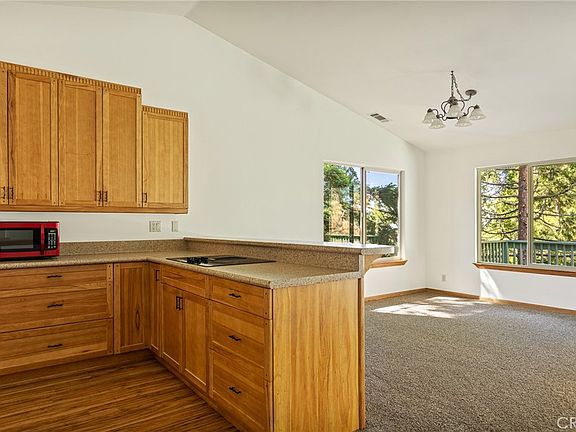 This large mountain home hosts 4-bedrooms and 2.5-baths with level entry and a two car oversized garage. Located in the desirable Upper ROWCO area of Running Springs this home is a commuter’s dream. Enjoy the cute patio before entering the foyer with large closet and half bath. The kitchen has an eat at bar and bonus morning room. Dining area is open to the living room perfect for entertaining. A large back deck is directly located off the main living area. The main floor primary room features two walk in closets, soaker tub, walk in shower, vanity and dual sinks. A semi-transparent mirror has TV monitors for those that need to catch the news or favorite cartoon in the am. The laundry room and oversized garage make up this main level. Downstairs has a large landing area that could be used as a game area. This floor also has 3 additional bedrooms, with ceiling fans and access to another large back deck. Off the hallway is a full bathroom with dual sinks and tub-shower. Large storage room could be finished for an office or small gym. Another storage area is located off the buildup which has potential to be finished to add another living space to this already large home. New carpet, dual pane windows, two water heaters with circulation pump, fenced yard and level parking are just some of the homes features. Minutes to hiking trails, ski resort and highway 330 make this an ideal family home or vacation getaway.