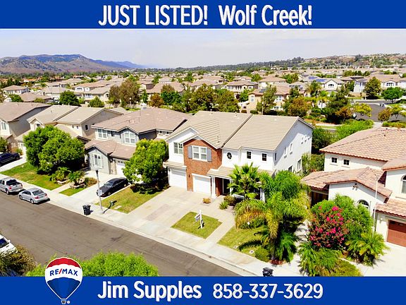 Jim Supples * Exclusive Listing Agent - (858)337-3629 -------------------- www.31316LocustCt.info -------------------- FORMAL MODEL HOME * Beautiful 4 bedroom + LOFT, 3 bathroom, 3 Car Garage * Located in the highly sought after Wolf Creek Subdivision. The entry opens to the custom travertine floors, throughout much of the downstairs with 24 ft vaulted ceilings overhead. The kitchen is just beyond the dining room and living room and is highlighted with travertine counters, gas cooktop, built in ovens, plenty of cabinet storage, new Bosch dishwasher, center island with bar seating and a nook with sliding door access to the backyard. The kitchen opens to the family room and features a gas fireplace, large media niche and built in shelves, vaulted ceilings, and a full wet bar. Beyond the family room is a large downstairs bedroom with new carpet, as well as a full bathroom. There is also a seperate laundry room with sink, and cabinets. Upstairs features bamboo flooring in the bedrooms, loft, and hallways. There is a large loft, perfect for a game room, or home office, and 2 more guest bedrooms with large closets. A large guest bathroom with tile flooring, dual sinks and tub shower combo. The master suite is spacious with private master bathroom with soaking tub, walk in shower, dual sinks, vanity, private toilet area and dual walk in closets with mirrored closet doors. The home features built in stereo speakers throughout, lots of plantation shutters, Dual Zone Air Conditioning System, Fully fenced backyard planter beds with beautiful landscaping and vinyl fencing. Located near the Top Rated Great Oaks High School, walking distance to Temecula Luiseno Elementary School and Erle Stanley Gardner Middle School, and about 100 yards to a neighborhood park with play equipment. Also conveniently located just minutes to I-15, walking and biking trails, entertainment, shopping, golf course, dining, casino, Old Town Temecula, dozens of great winerys, quick commute to San Diego and so much more.