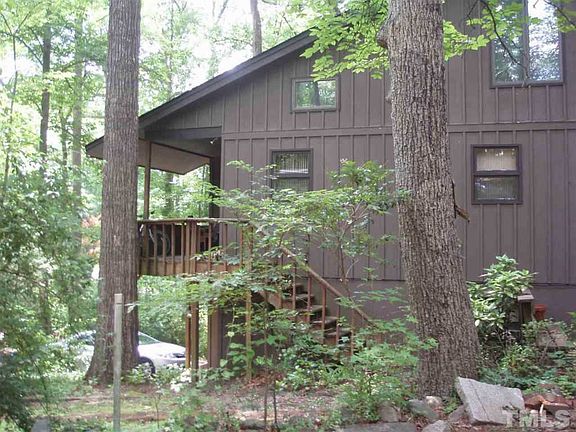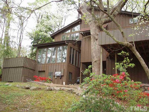 Wonderful nature lovers paradise. Large split level house sitting on a hill overlooking acre, all inside the beltline. Near the corner of Wake Forest Rd and 6 forks Rd in Crabtree Heights Assoc. 3 large bedrooms of which 2 are master bed and bath suites and 3 full baths. Sun room with windows on 3 walls overlooking Big Branch creek and lovely large yard. Kitchen with dining area; laundry off main hall. All cedar lined closets, ceramic tile baths with one having marble floor, hardwood floors throughout.